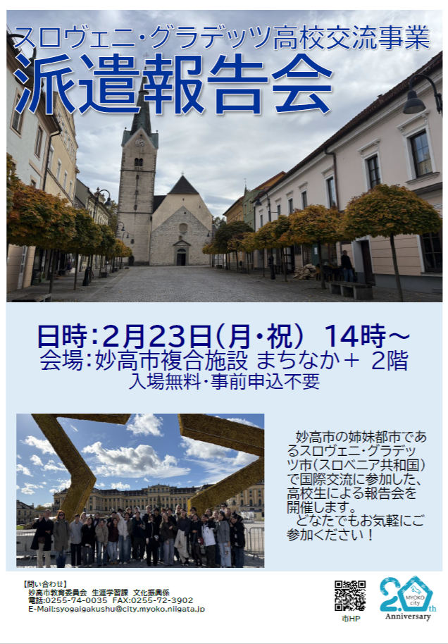 スロヴェニ・グラデッツ高校交流事業 派遣報告会を開催します。