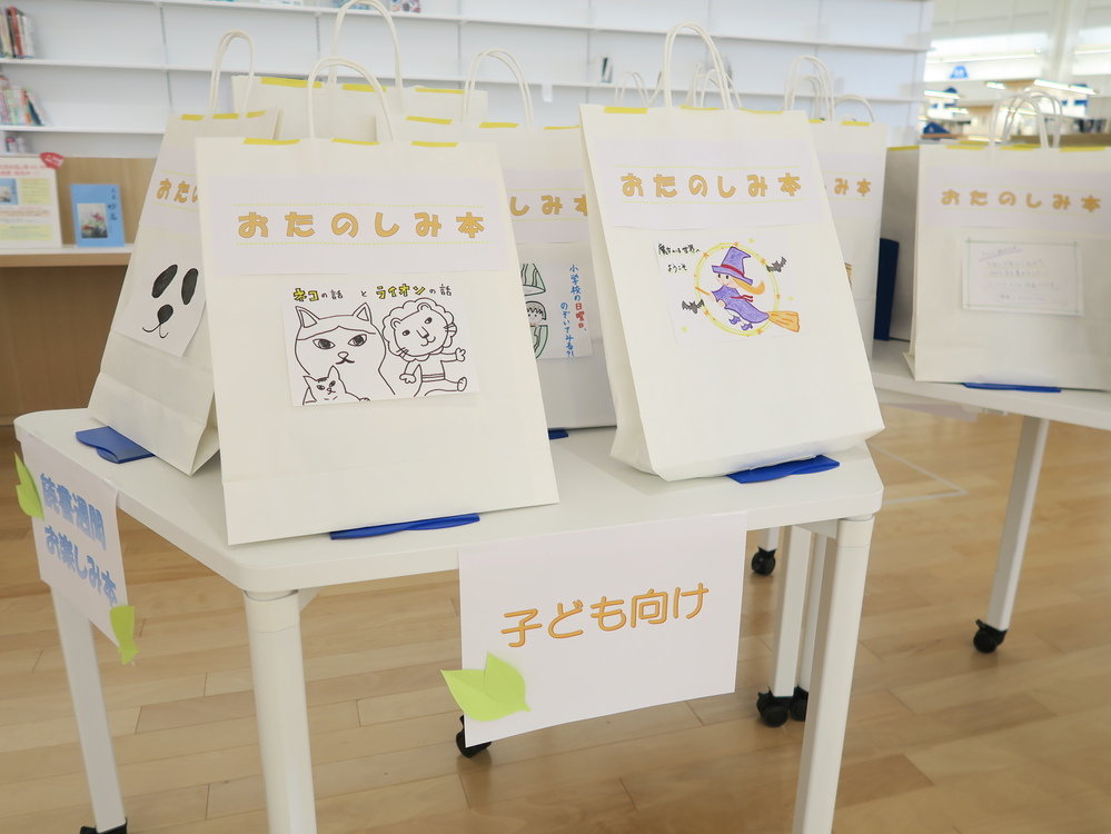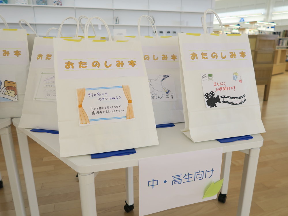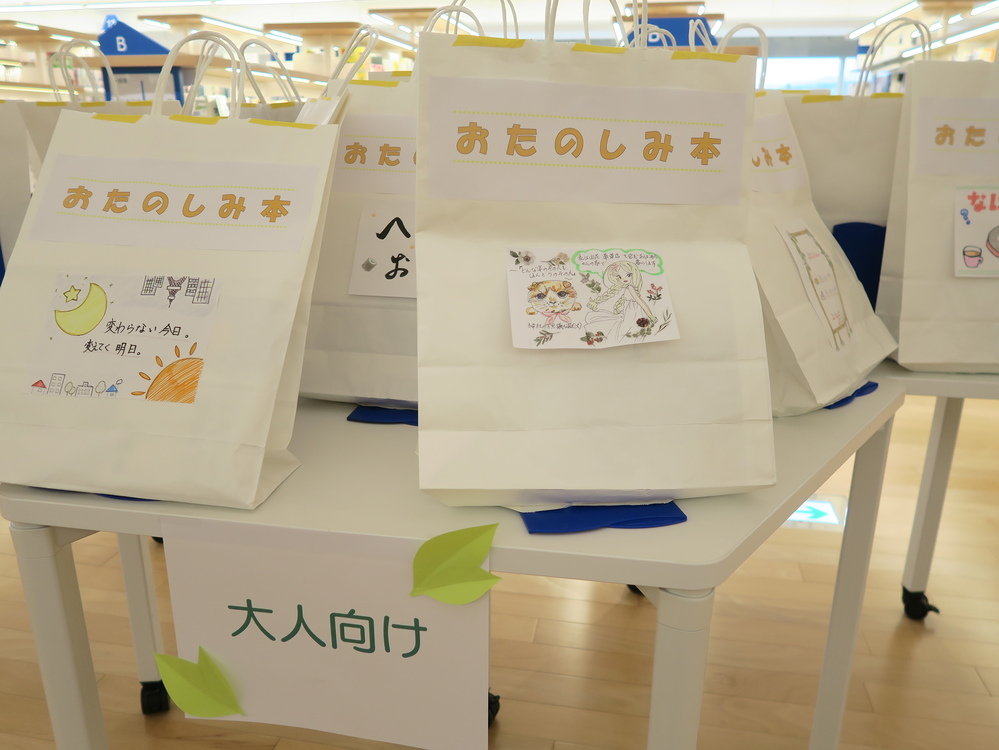 スタッフや図書館サポーターがテーマごとに選んだ本を、紙袋に入れて貸し出します。